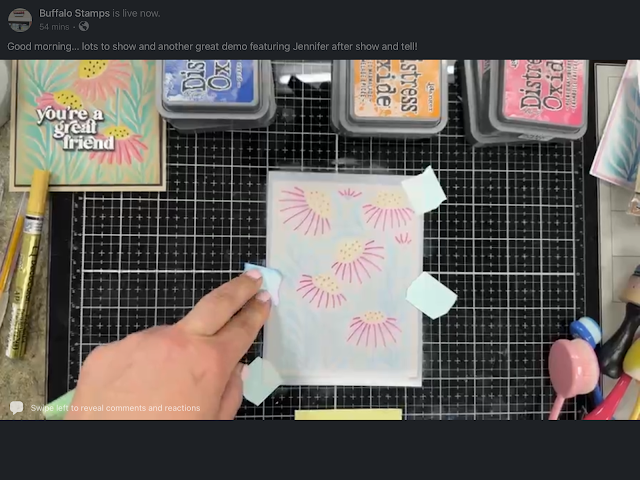 On Saturday, Jennifer L. followed Sharon's new product review with her favorite technique for using layered stencils. This is the stencil set Jennifer used in her demo.