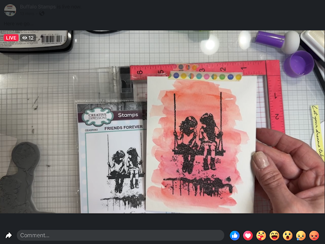 On Wednesday's video Sharon illustrated how she colored these stamps using several different ways. This first sample was colored using brushes and the variety of inks you see surrounding the image.